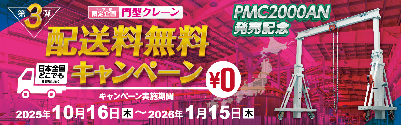 - 2025年10月09日ニュース待望の2Ton門型クレーン発売記念!【第3弾】配送料無料キャンペーンのご案内