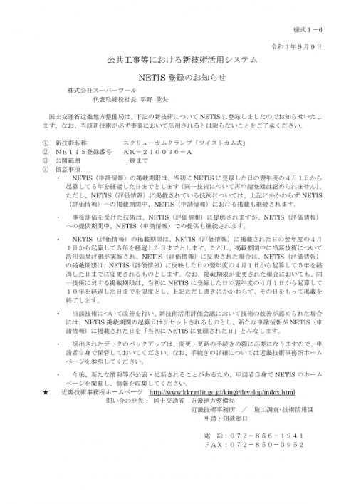 2021年9月9日に新技術情報提供システム(NETIS)に登録が決定致しました。