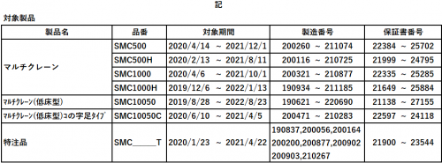 マルチクレーンのロックピン無償交換に関するお知らせ