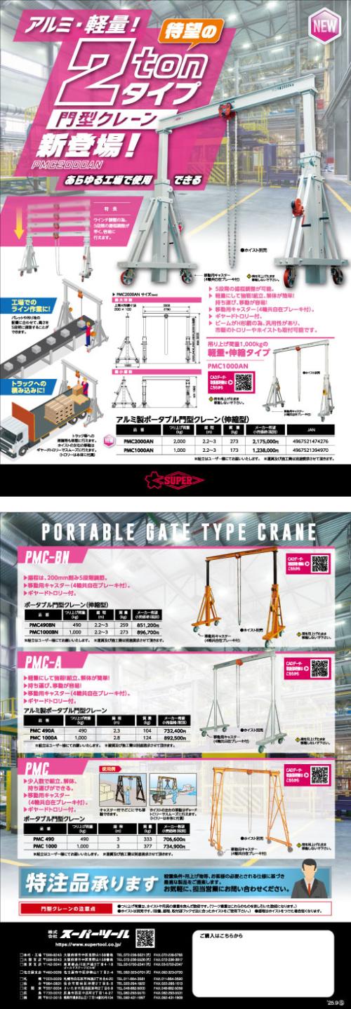つり上げ荷重2,000㎏のサイズ展開で、現行品のPMC1000ANをさらにパワーアップした商品となっております!