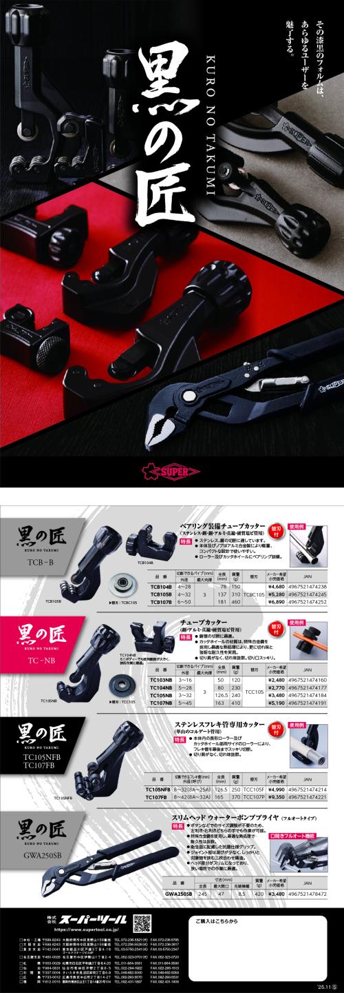ウォーターポンププライヤ(フルオートタイプ)も新シリーズ「黒の匠」に仲間入り。
