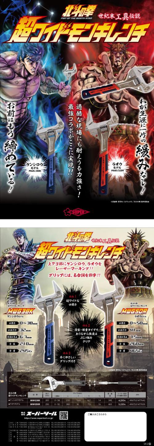 この度、新作アニメ『北斗の拳 -FIST OF THE NORTH STAR-』 (原作:武論尊/漫画:原 哲夫)とコラボレーションした「超ワイドモンキレンチ ケンシロウモデル」「超ワイドモンキレンチ ラオウモデル」を、数量限定で販売開始いたします。